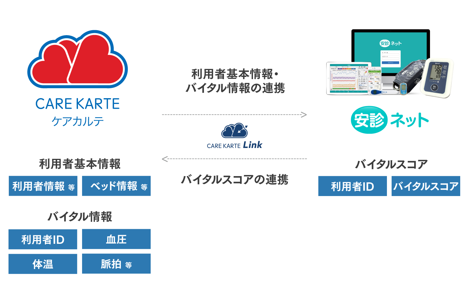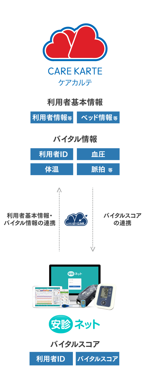 バイタルサインの異常値に関するスコア情報を連携することで、高齢者の状態変化を早期に発見できるようになります。