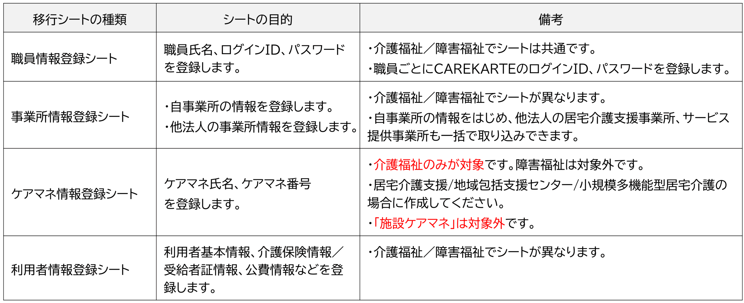※移行シート(Excel)に必須未入力やエラーがあると、その他全ての情報が取り込みできません。