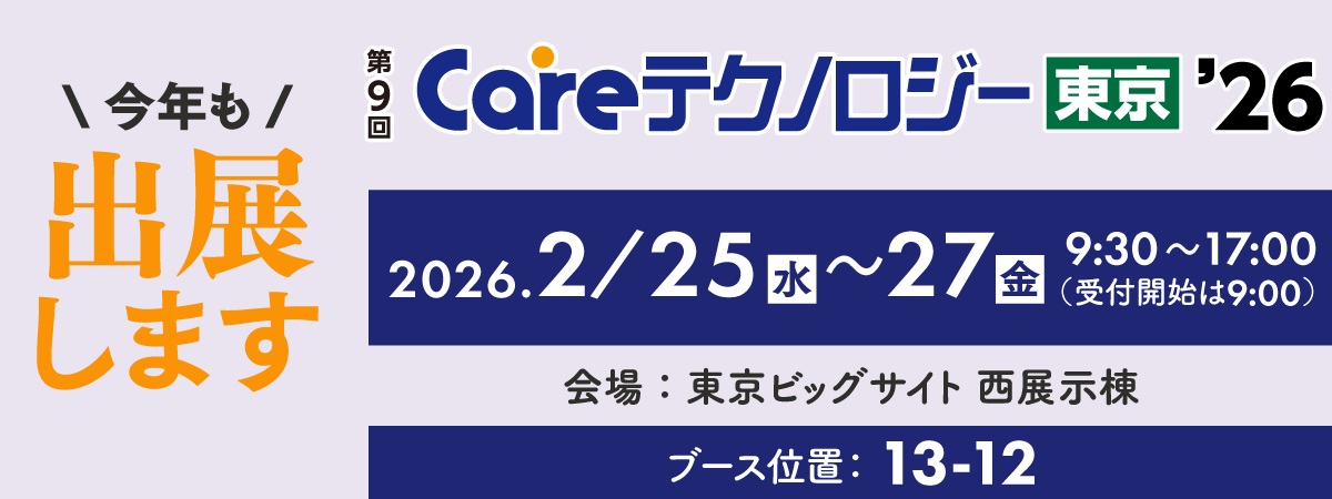 開発中の”記録を自動化”する「ケアポジ・ケアカッテ」のご紹介もしますので、皆様ぜひケアコネクトジャパンブースにお立ち寄りください。