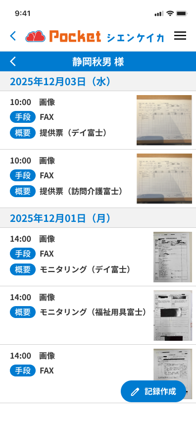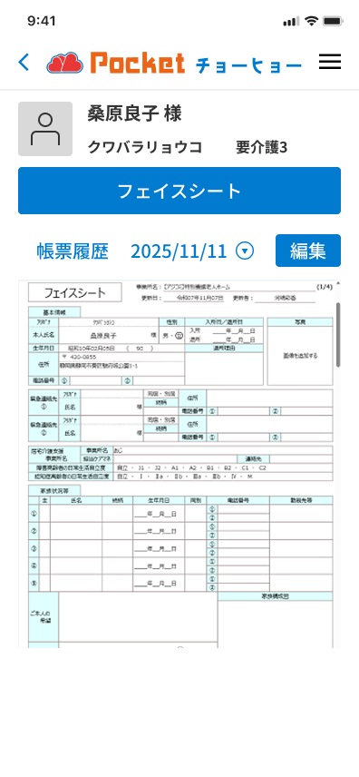 利用者ごとの帳票の確認や編集、新規作成が可能です。